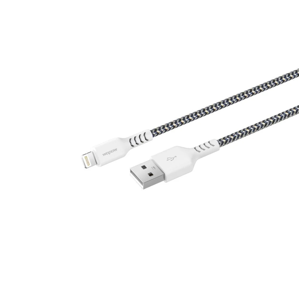 كابل iPhone قماشي Wobo FB01 – أبيض، طول 1.2 متر⚡ شحن سريع وموثوق